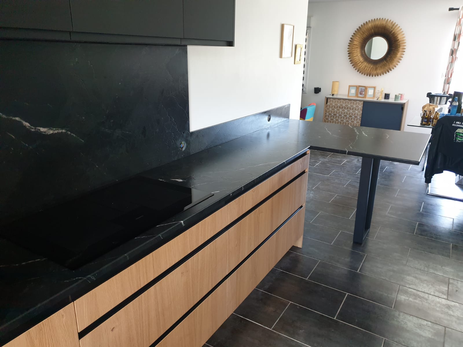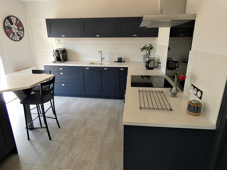 Nous avions un projet rénovation ou plutôt, de création totale de notre cuisine de 20 m2, le projet proposé et réalisé à été largement conforme à nos souhaits. Le résultat final est une totale métamorphose de notre cuisine, ouverte sur la salle à manger elle s'intègre parfaitement et le rendu est fidèle à ce que l'on espérais. Cuisiniste sympathique et à l'écoute, le projet proposé et les conseils apportés lors de sa visite de prise de mesures nous ont rassurés, c'était notre premier projet cuisine. Elle nous a suivi tout au long du projet et a su réagir pour résoudre un petit imprévu lors de la pose de la cuisine. Meubles et accessoires de très bonne qualité, nous apprécions le circuit court et l'usine de fabrication à Saint Just est un point qui a su nous séduire. Les meubles sont pratiques et l'espace de rangement et de stockage est immense, les équipements en appareils ménager sont de bonne marque et se fonde à merveille dans la cuisine.