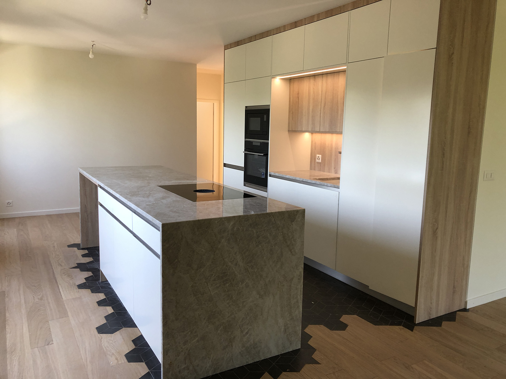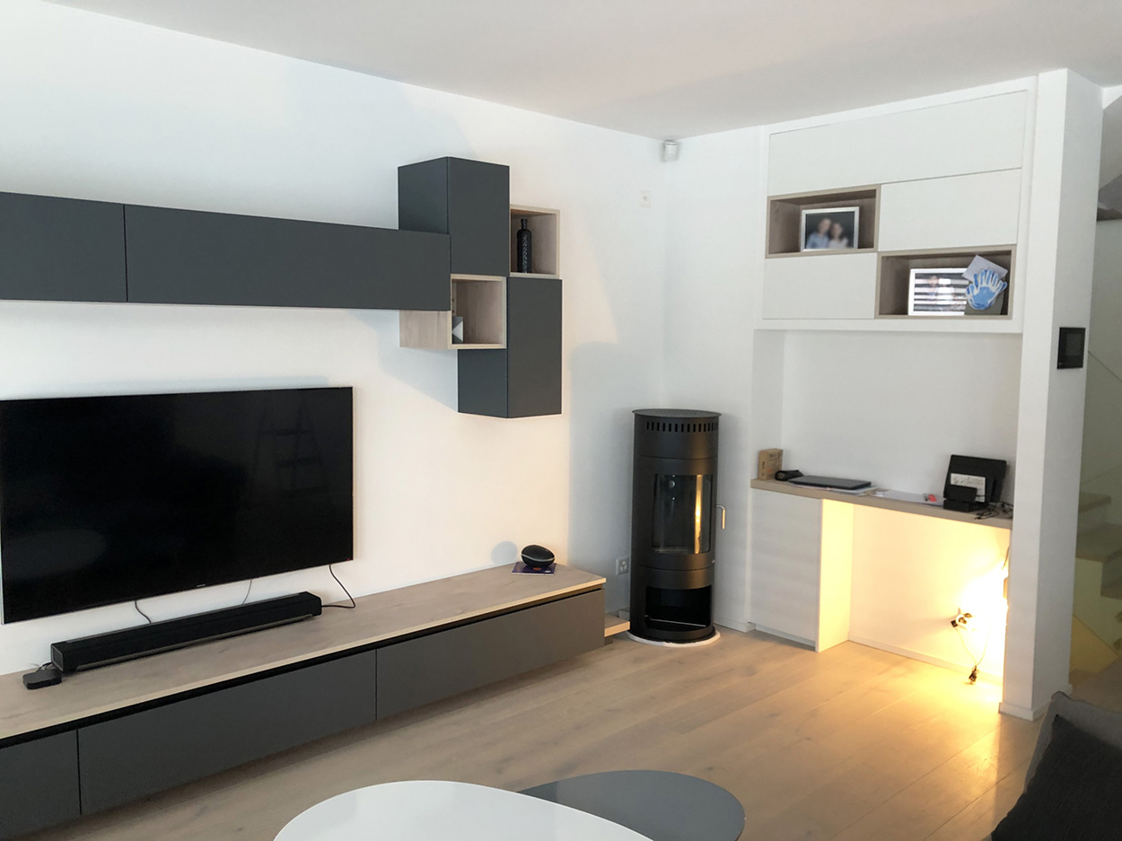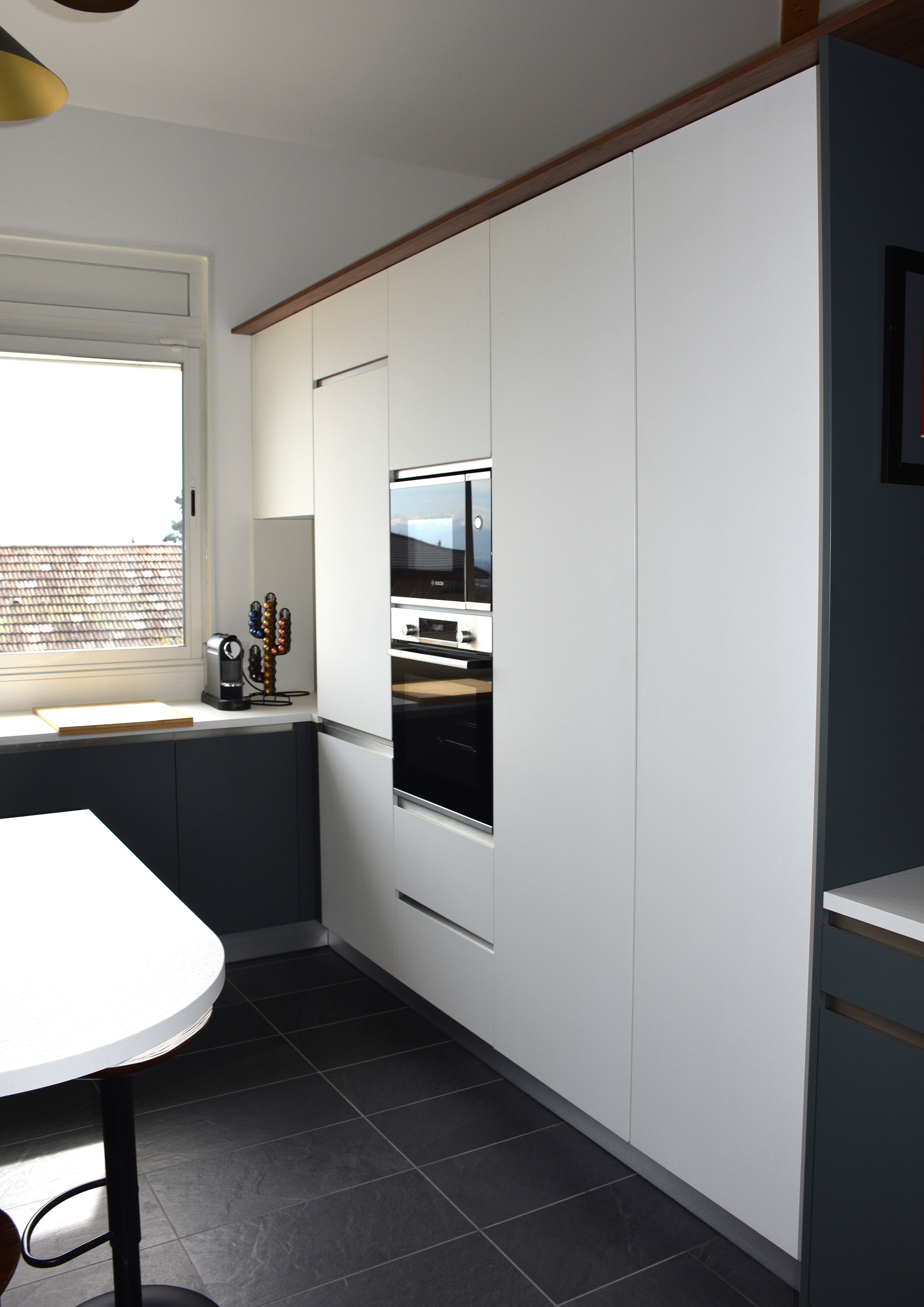 Nous nous étions engagés dans une rénovation profonde d'un appartement, nécessitant entre autre la transformation de la (petite) cuisine antérieure en chambre et l'affectation de notre nouvelle cuisine dans la salle-à-manger. Nous souhaitions avoir un espace aéré et lumineux et que l'espace cuisine fasse pleinement partie de la future grande pièce à vivre de notre appartement (incluant le salon et la table à manger). Nous devions aussi intégré un espace idéalement caché pour notre lave-linge et sèche-linge ainsi que de l'espace de rangement supplémentaire. Le résultat est à notre goût magnifique et a complètement satisfait nos attentes (pour ne pas dire dépassé). Cette grande pièce dans laquelle nous passons la quasi-totalité de notre temps est vraiment très bien agencée et conviviale. Nous avons été enchantés par les conseils et les propositions faites par François Delanoë (l'architecte d'intérieur) et Mikael Steinauer (pour tout ce qui concerne la technique). Ce binôme qui se complète parfaitement a toujours été disponible pour nous accueillir durant la planification des travaux (5 rendez-vous au total !!!) de même que par la suite pour régler un certains nombres de détails ou pour intégrer quelques changements dans le projet. Nous avions quelques idées précises. Ces dernières ont été pleinement prises en compte, mais nous devons avouer que nous avons aussi apprécié des propositions originales de leur part qui ont finalement amené une nette amélioration à notre projet. Leur monteur, Stéphane Grevaz, a aussi fait un excellent travail durant la pose des différents composants (cuisine, bâti pour l'encastrement des meubles hauts, verrière, armoire sur mesure, etc.) et a été extrêmement méticuleux. Aucune difficulté ne lui a résisté... Last but not least, Emmanuelle Roset a aussi fait un excellent travail durant la pose du béton ciré pour l'habillage de l'un des murs de notre cuisine. A noter que sans la proposition de cette solution par l'équipe de Charles Rema, nous n'aurions jamais pensé à cela. En deux mots, nous avons été ravis par la prise en charge de notre projet sous tous ces aspects (y compris notre contrainte financière). N'étant pas du tout du métier, il était important pour nous de pouvoir compter sur une équipe solide et expérimentée pour ces importants travaux. Nous sommes enchantés par la qualité des produits et des équipements que nous avons. Nous sommes confiants que ceux-ci dureront longtemps. De plus, le suivi après livraison a aussi été extrêmement professionnel. Le monteur et l'architecte sont revenus à plusieurs reprises pour effectuer quelques retouches/réglages mineurs sans broncher...