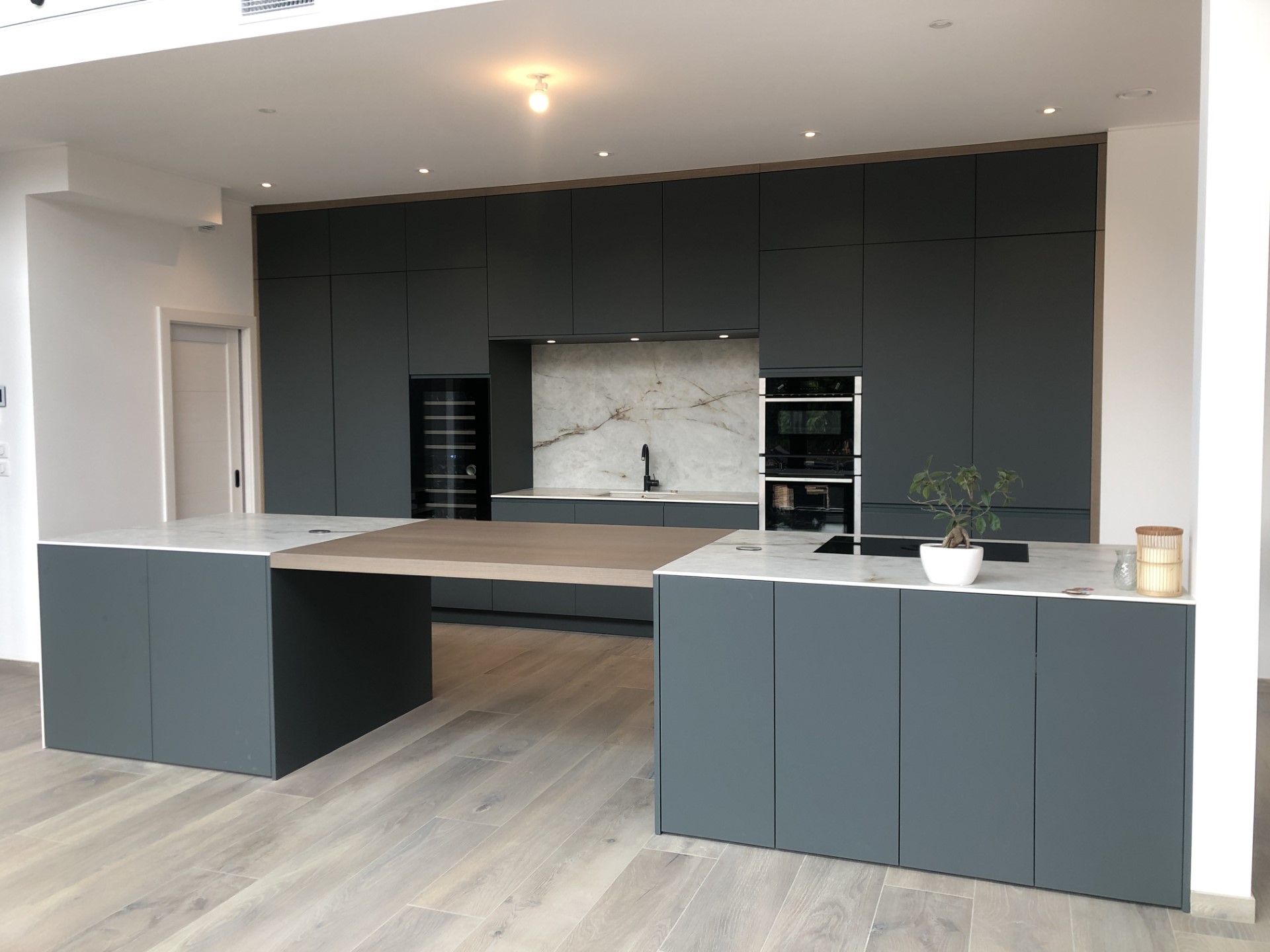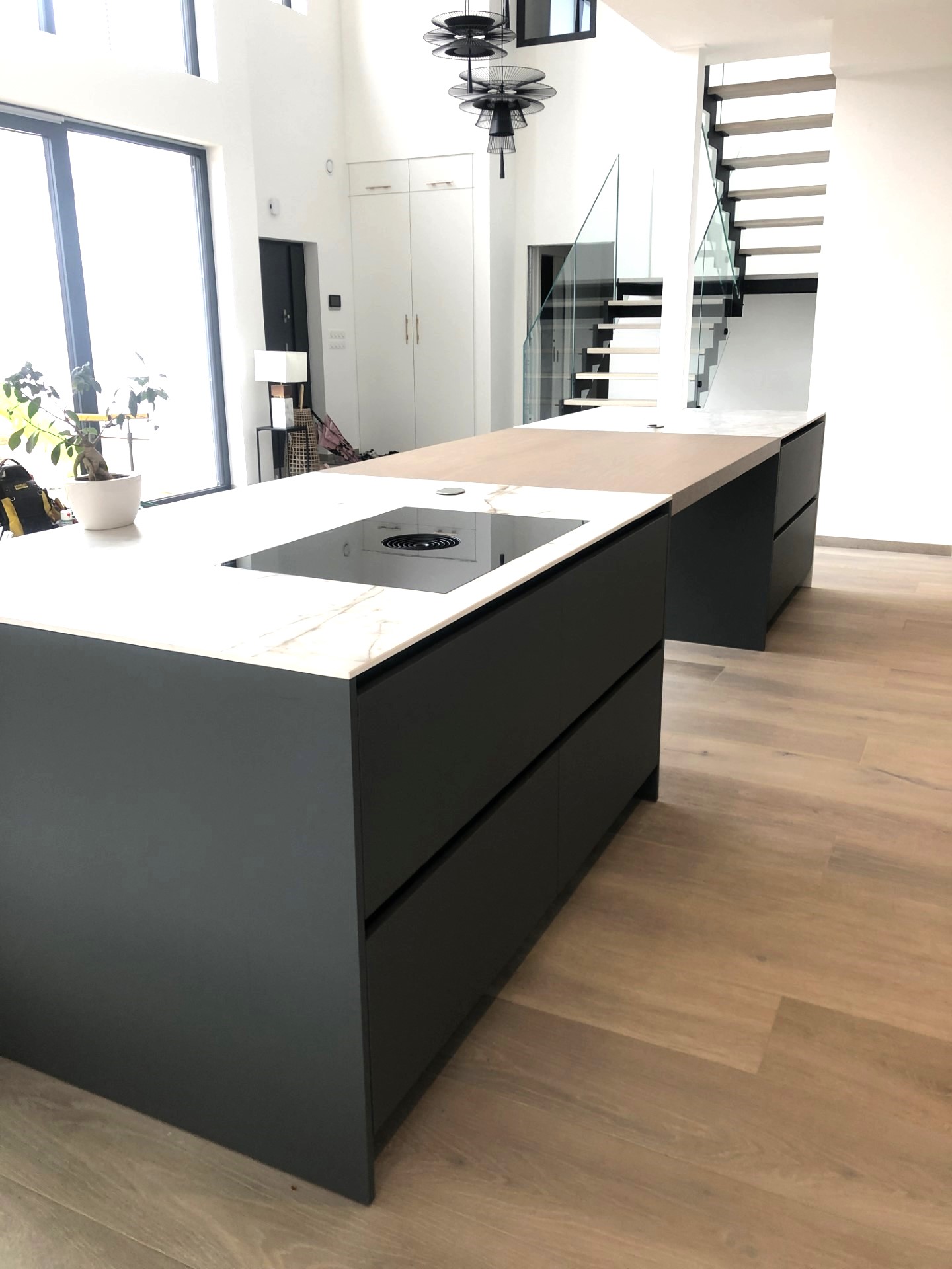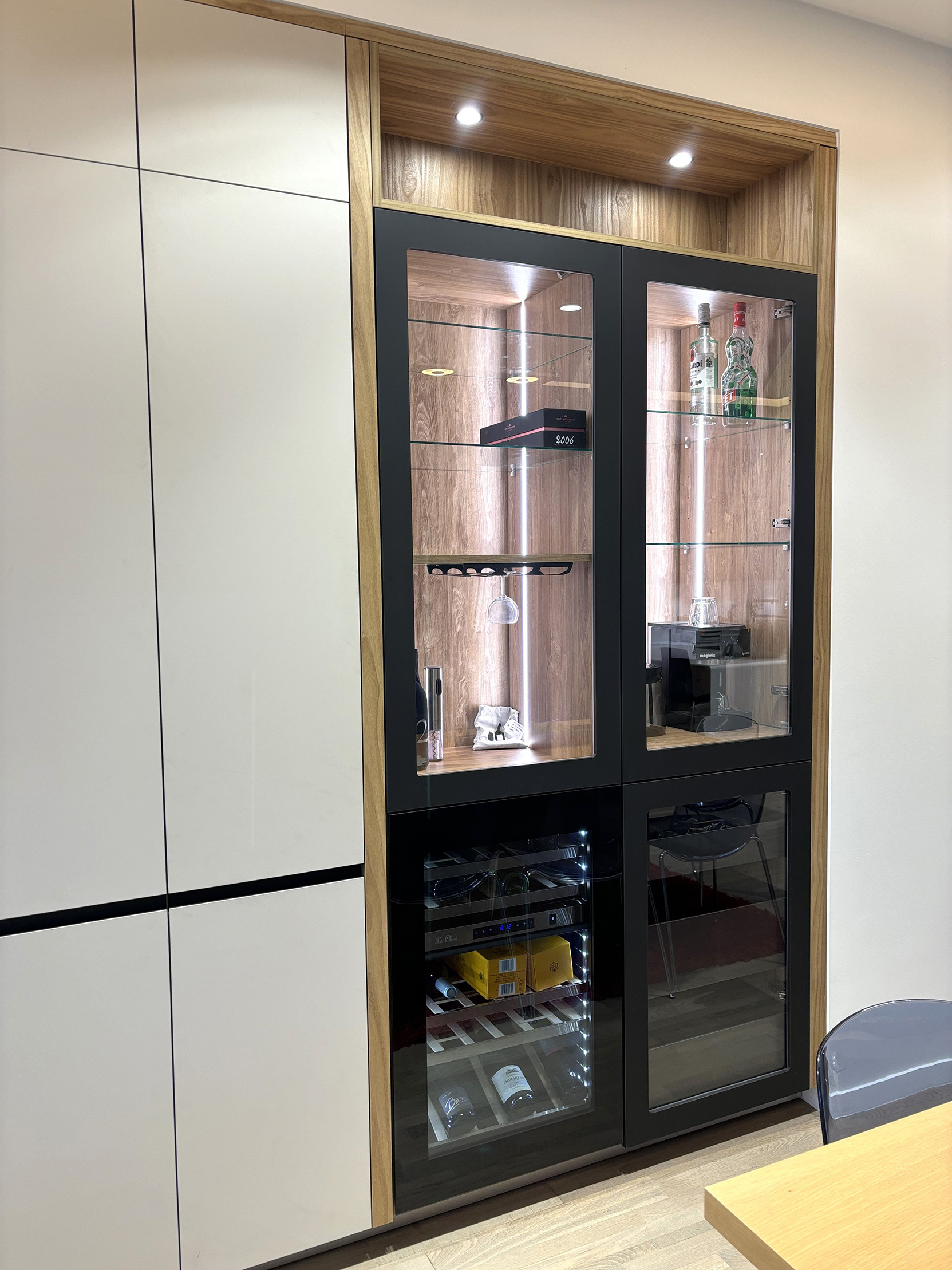 Nous nous étions engagés dans une rénovation profonde d'un appartement, nécessitant entre autre la transformation de la (petite) cuisine antérieure en chambre et l'affectation de notre nouvelle cuisine dans la salle-à-manger. Nous souhaitions avoir un espace aéré et lumineux et que l'espace cuisine fasse pleinement partie de la future grande pièce à vivre de notre appartement (incluant le salon et la table à manger). Nous devions aussi intégré un espace idéalement caché pour notre lave-linge et sèche-linge ainsi que de l'espace de rangement supplémentaire. Le résultat est à notre goût magnifique et a complètement satisfait nos attentes (pour ne pas dire dépassé). Cette grande pièce dans laquelle nous passons la quasi-totalité de notre temps est vraiment très bien agencée et conviviale. Nous avons été enchantés par les conseils et les propositions faites par François Delanoë (l'architecte d'intérieur) et Mikael Steinauer (pour tout ce qui concerne la technique). Ce binôme qui se complète parfaitement a toujours été disponible pour nous accueillir durant la planification des travaux (5 rendez-vous au total !!!) de même que par la suite pour régler un certains nombres de détails ou pour intégrer quelques changements dans le projet. Nous avions quelques idées précises. Ces dernières ont été pleinement prises en compte, mais nous devons avouer que nous avons aussi apprécié des propositions originales de leur part qui ont finalement amené une nette amélioration à notre projet. Leur monteur, Stéphane Grevaz, a aussi fait un excellent travail durant la pose des différents composants (cuisine, bâti pour l'encastrement des meubles hauts, verrière, armoire sur mesure, etc.) et a été extrêmement méticuleux. Aucune difficulté ne lui a résisté... Last but not least, Emmanuelle Roset a aussi fait un excellent travail durant la pose du béton ciré pour l'habillage de l'un des murs de notre cuisine. A noter que sans la proposition de cette solution par l'équipe de Charles Rema, nous n'aurions jamais pensé à cela. En deux mots, nous avons été ravis par la prise en charge de notre projet sous tous ces aspects (y compris notre contrainte financière). N'étant pas du tout du métier, il était important pour nous de pouvoir compter sur une équipe solide et expérimentée pour ces importants travaux. Nous sommes enchantés par la qualité des produits et des équipements que nous avons. Nous sommes confiants que ceux-ci dureront longtemps. De plus, le suivi après livraison a aussi été extrêmement professionnel. Le monteur et l'architecte sont revenus à plusieurs reprises pour effectuer quelques retouches/réglages mineurs sans broncher...
