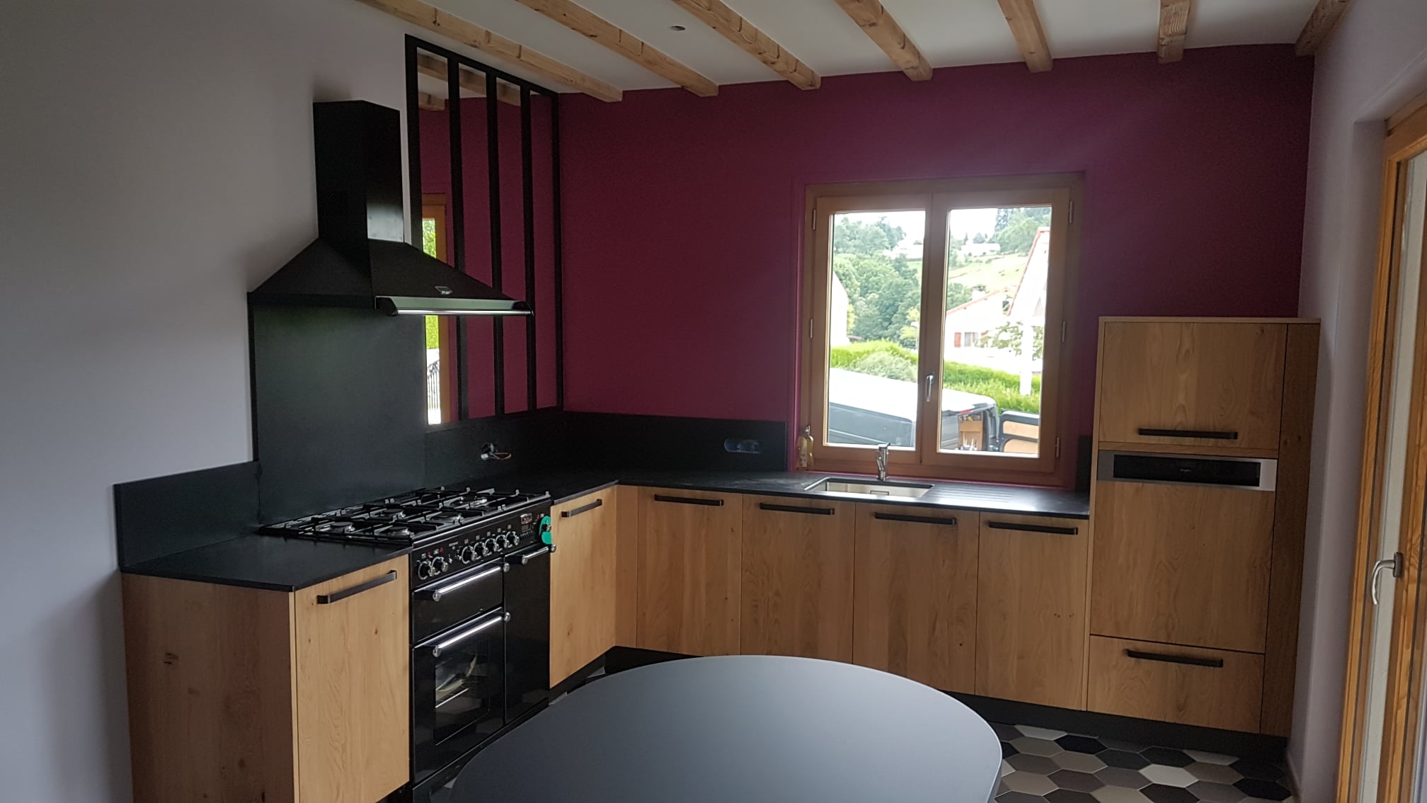 Cuisine dans une ancienne ferme rénovée. Le cuisiniste a été précis dans la préparation du projet et la qualité des travaux de réalisation, à recommander.