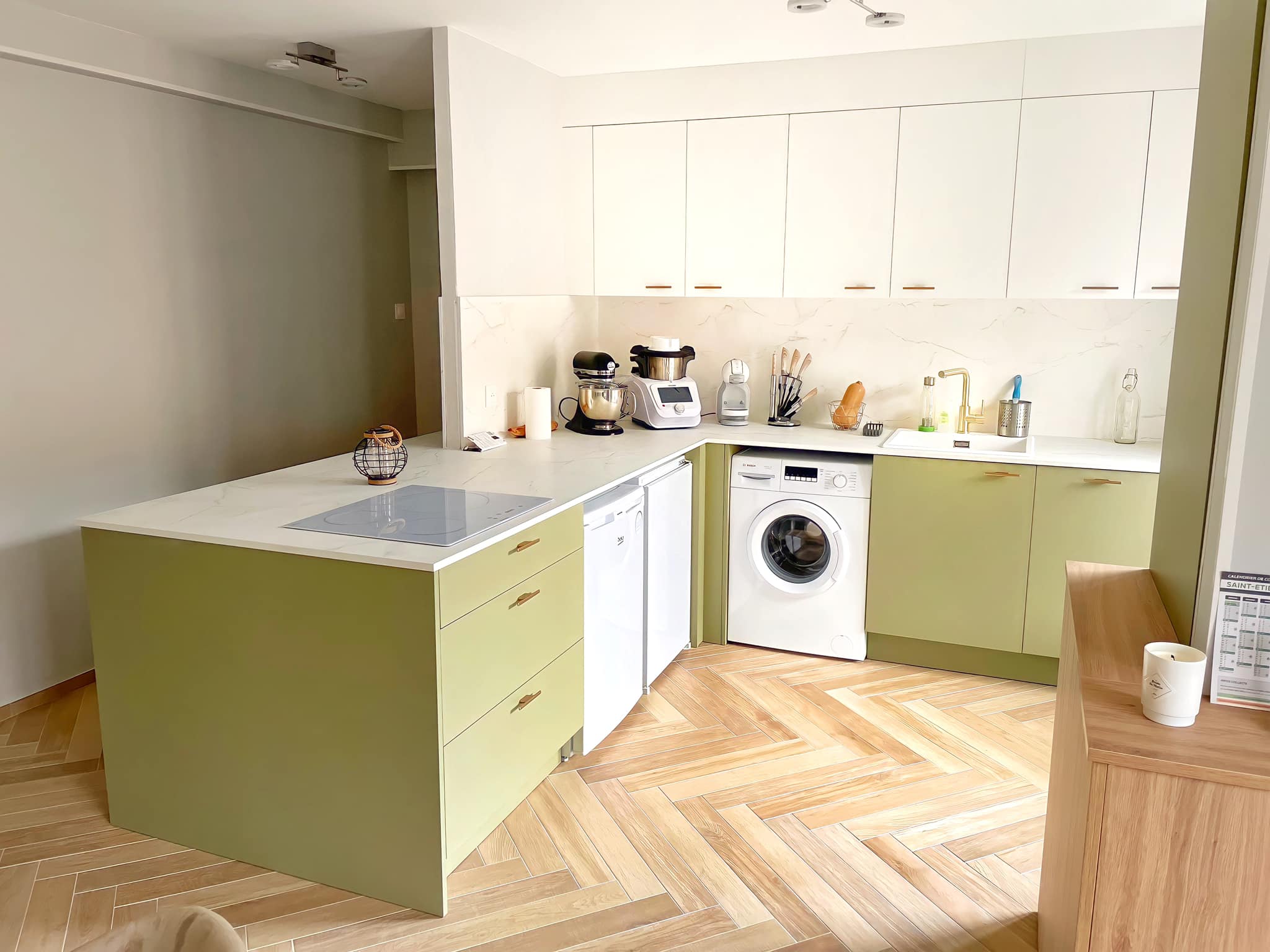 Aménagement d'une cuisine pour un studio dédié à la location. Bon résultat final, au goût du jour et cuisine fonctionnelle. Très bon conseil du cuisiniste pour aménager une cuisine dans un espace restreint. Au niveau de la qualité des produits, nous ne pouvons pas donner un avis immédiat la cuisine n'étant pas encore en service.