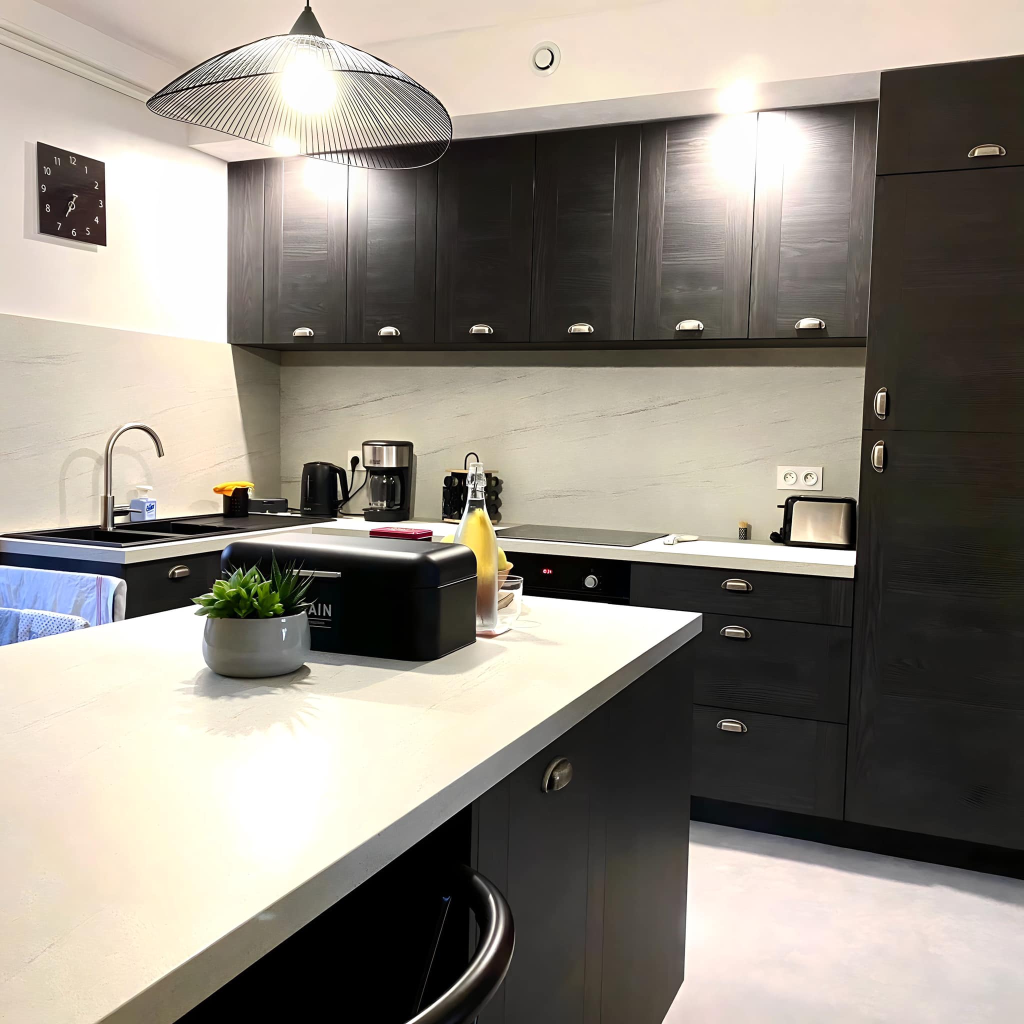 Le projet :un remplacement de cuisine existante avec nos idées dans un premier temps... Relayées par notre cuisiniste qui a mis son expérience dans le projet, complété par la compétence de son équipe. Produits de qualité satisfaisante, à voir sur le long terme, avec une bonne première impression.