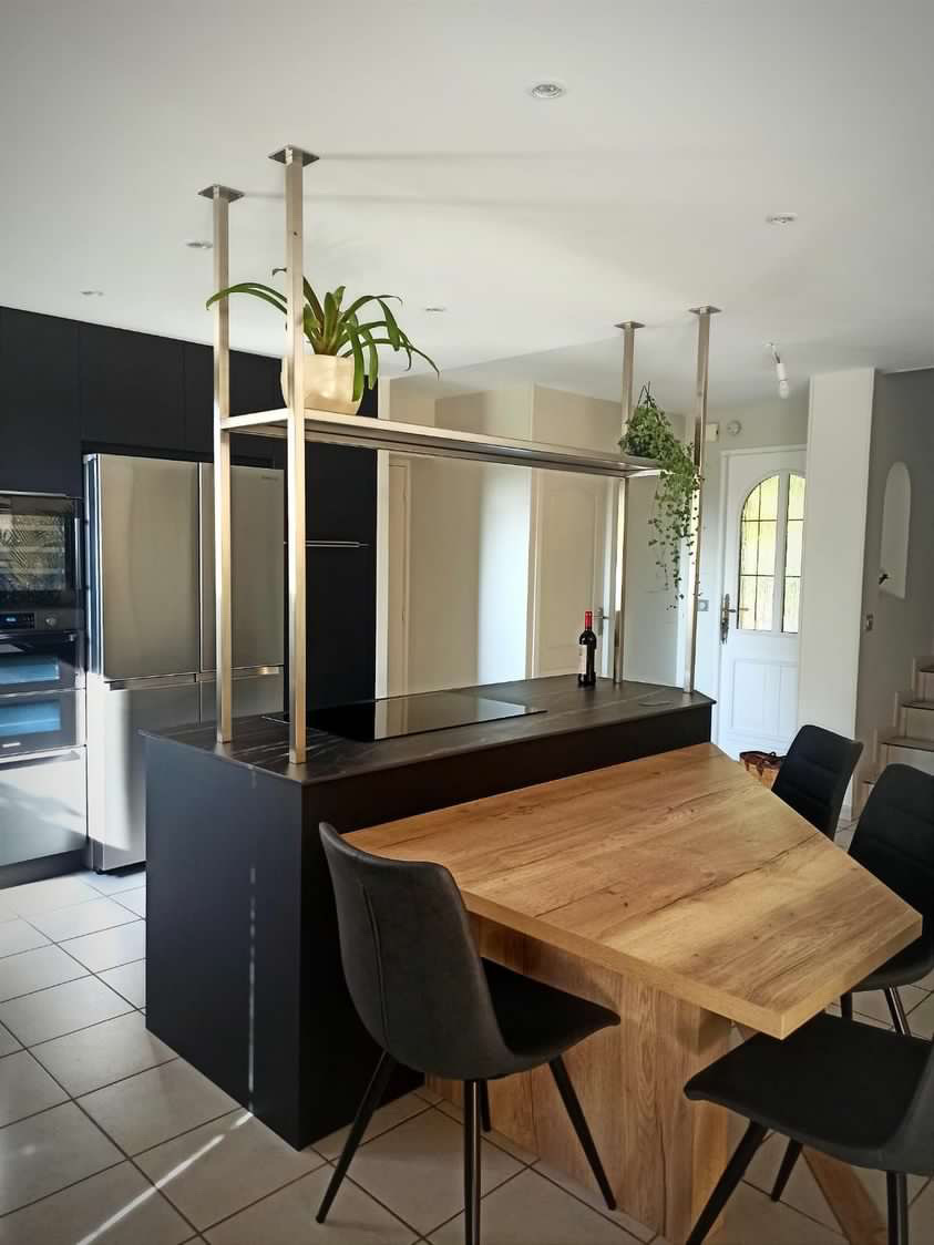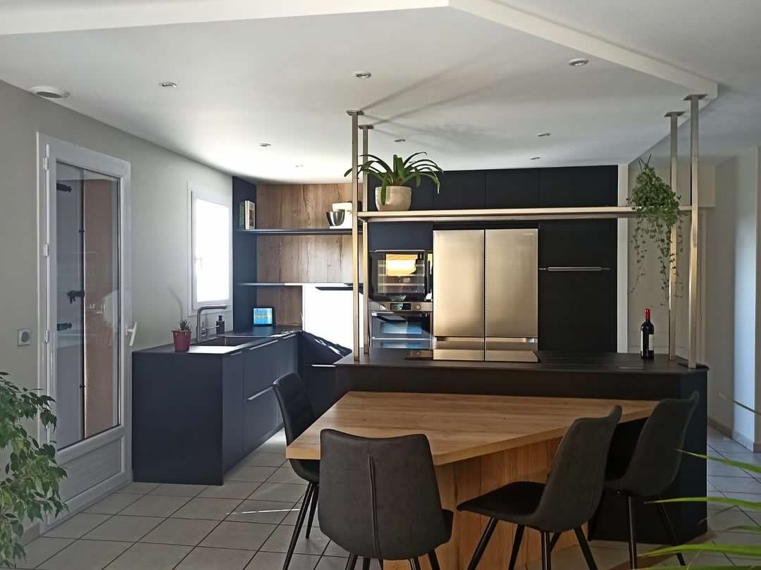 Nous avions déjà fait réaliser une première cuisine (appartement en location) dont nous étions très satisfaits et nous avons confié à Jean Michel la réalisation de notre cuisine principale. Jean Michel a pris en compte toutes nos demandes y compris le manque d'éclairage de notre ancienne cuisine qu'il a résolu par la création d'une poutre qui s’intègre parfaitement bien. Il nous a réalisé une cuisine très fonctionnelle et très esthétique dans un délai court. Les meubles sont de très belles qualité, nous avions bien travaillé le choix de l’électroménager et nous ne sommes pas déçus, c'est conforme à ce que nous souhaitions.