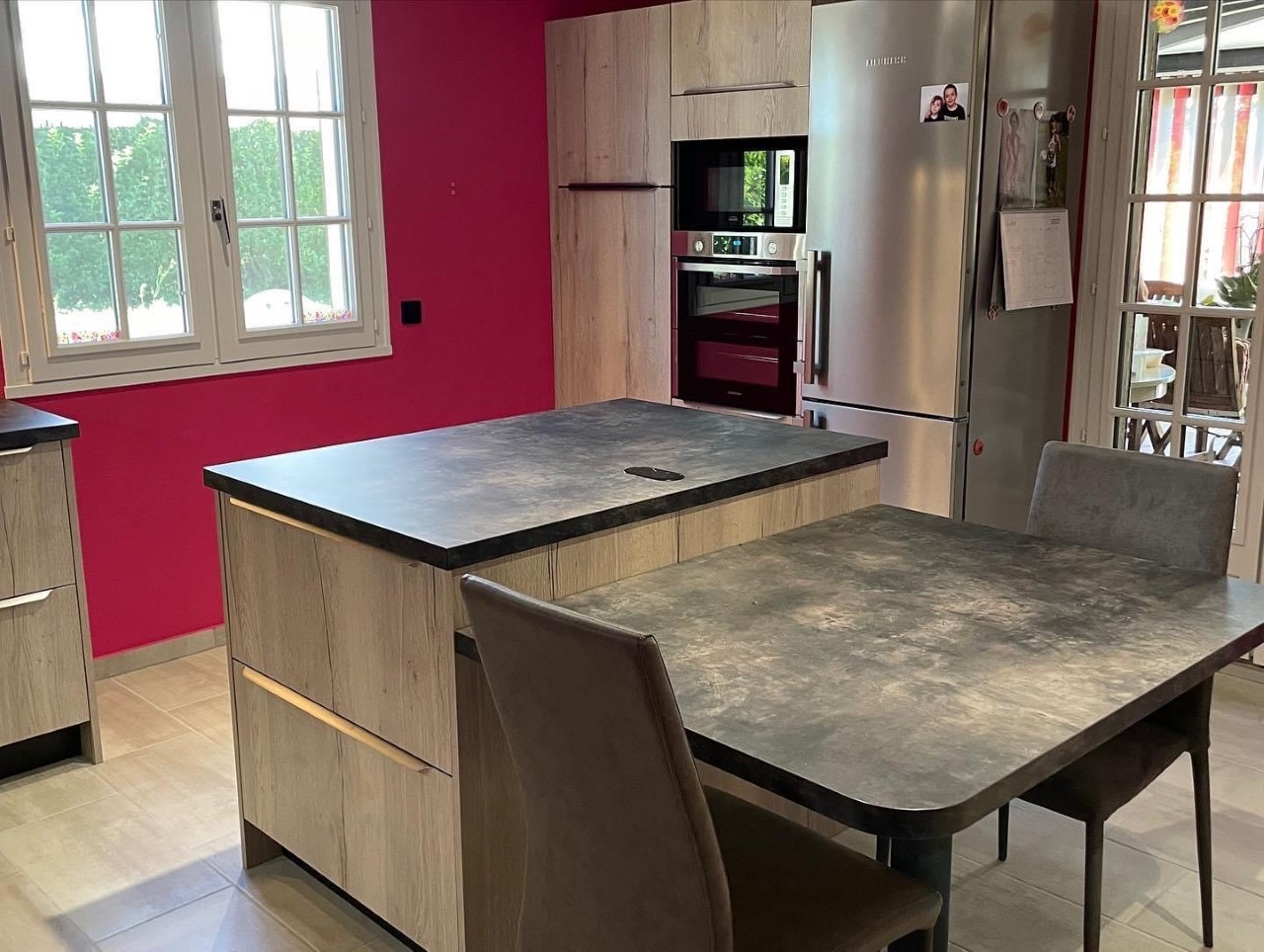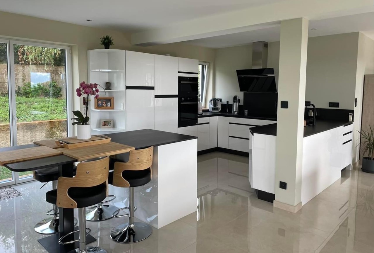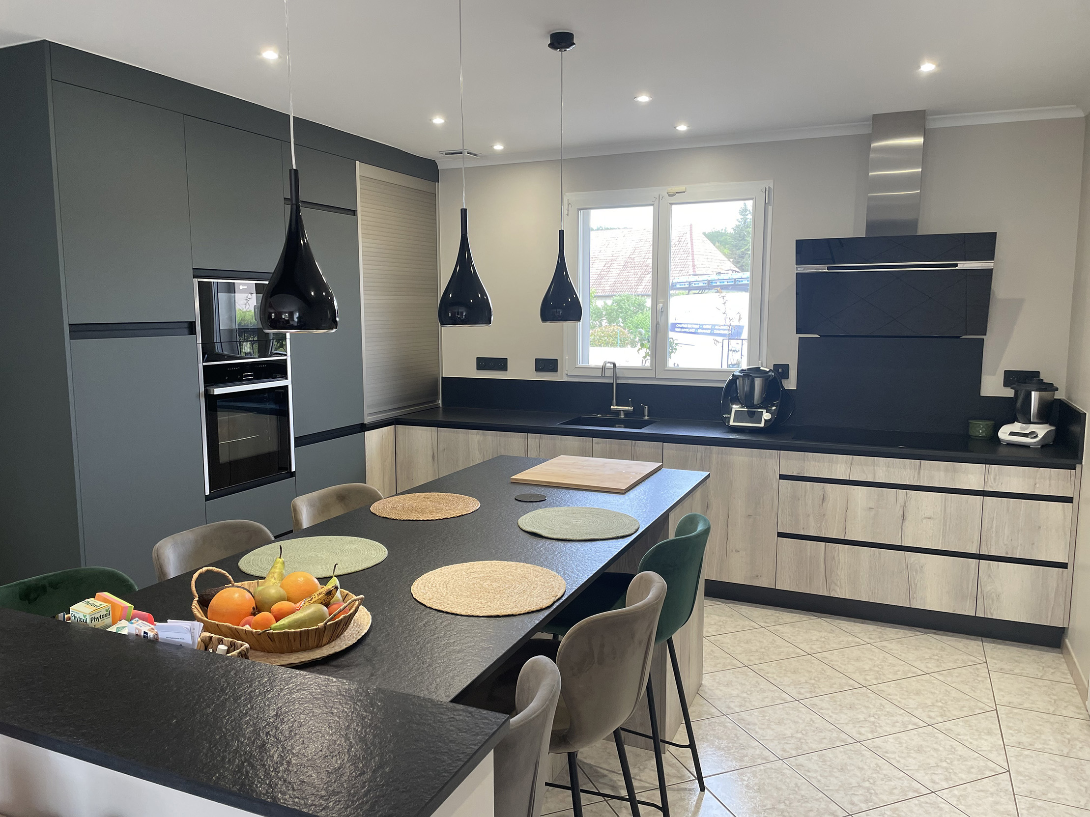 • Le remplacement de notre ancienne cuisine en bois rustique par une cuisine contemporaine s'inscrivait dans un vaste projet avec notamment l'ouverture des espaces (suppression d'un mur porteur, réduction d'une cloison avec pose de verrière…) Le résultat est très réussi : la cuisine est belle et fonctionnelle JTM a parfaitement assuré la prestation. JTM a su nous accompagner dans les étapes clés et nous a dessiné la cuisine dans ce nouvel espace JTM nous a également conseillé des artisans qui ont réalisé une grande partie des travaux JTM nous a accordé beaucoup de temps en magasin et à notre domicile pour choisir les meubles et appareils électroménagers les mieux adaptés à notre projet. Nous sommes très satisfait des conseils, de la prestation et de la qualité des produits et équipements. Malgré l'ampleur du chantier, les délais convenus ont été respectés
